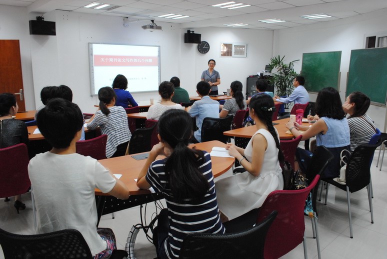 张博教授从期刊论文的研究基础、期刊论文的几个关键要素、期刊论文投稿的注意事项三方面内容入手,详细阐述了期刊论文的实证研究的重要性以及期刊论文写作要素。张博强调,文章不是写出来的而是做出来的,她结合案例,分析了从选题创新到论证、标题、引言、提要、关键词、参考文献、和征引规范等期刊论文写作的要求。讲座结束后,张博就青年教师的在期刊写作方面的困难答疑解惑,并叮嘱到国际学院教师要专注研究方向,潜心研究,不断提升学术素养,教师们纷纷表示此次讲座受益匪浅。