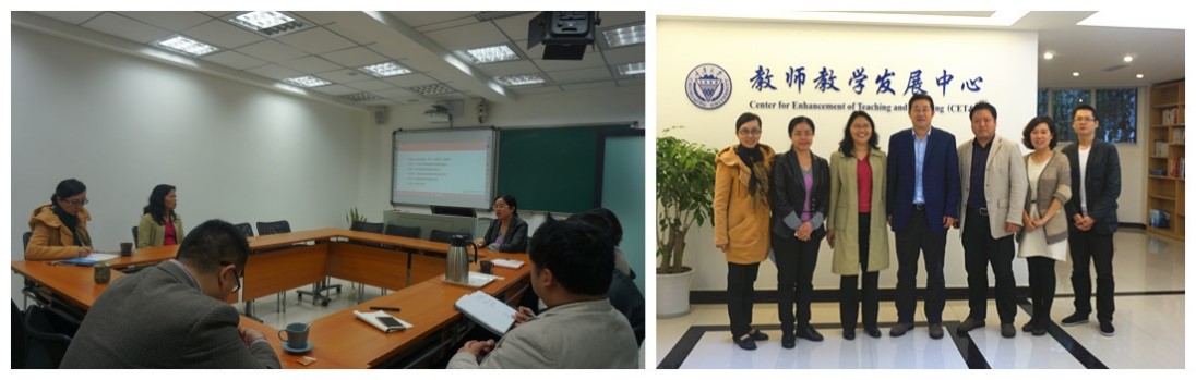 2016年4月8日上午,江苏理工大学副校长周兰珍一行到访重庆大学教师教学发展中心。重庆大学党委副书记白晨光教授出席,我校教师教学发展中心主任彭静以及项目主管李珩、陈圆和刘皓等人参加了座谈交流。