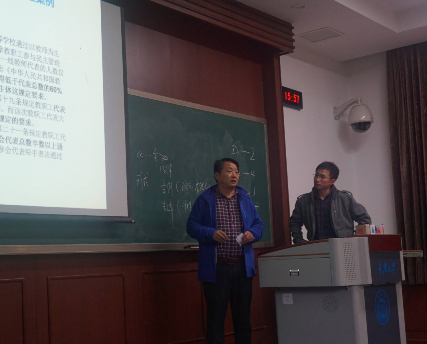 杨春平教授以高等教育中出现和处理过的实际案例为切入点,为老师们讲述了法律思维的重要性以及如何培养法律思维。接着分五个板块为老师们解读了高等教育法基本原理和基本内容。最后他从我国依法治国、依法治教的迫切需求阐述了高等教育体制改革中高等教育法制在立法、执法、法律监督三方面的进一步改进。