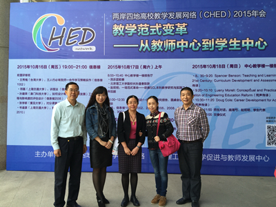 2015年10月16-18日,两岸四地高校教学发展网络(CHED)2015年会在北京理工大学举行。本届年会围绕“教学范式变革——从教师中心到学生中心”主题,来自中国大陆、台湾、香港、澳门两岸四地的200多所高校700余位教师发展中心工作人员、一线教师、教育管理者及教育研究者参加了本届年会。我校教师教学发展中心副主任彭静教授和付红桥老师、校督导组组长何川教授、外国语学院雷蕾老师及自动化学院马乐老师应邀参加年会,并在分论坛上做题为《教师教学成长的路径探索》报告。