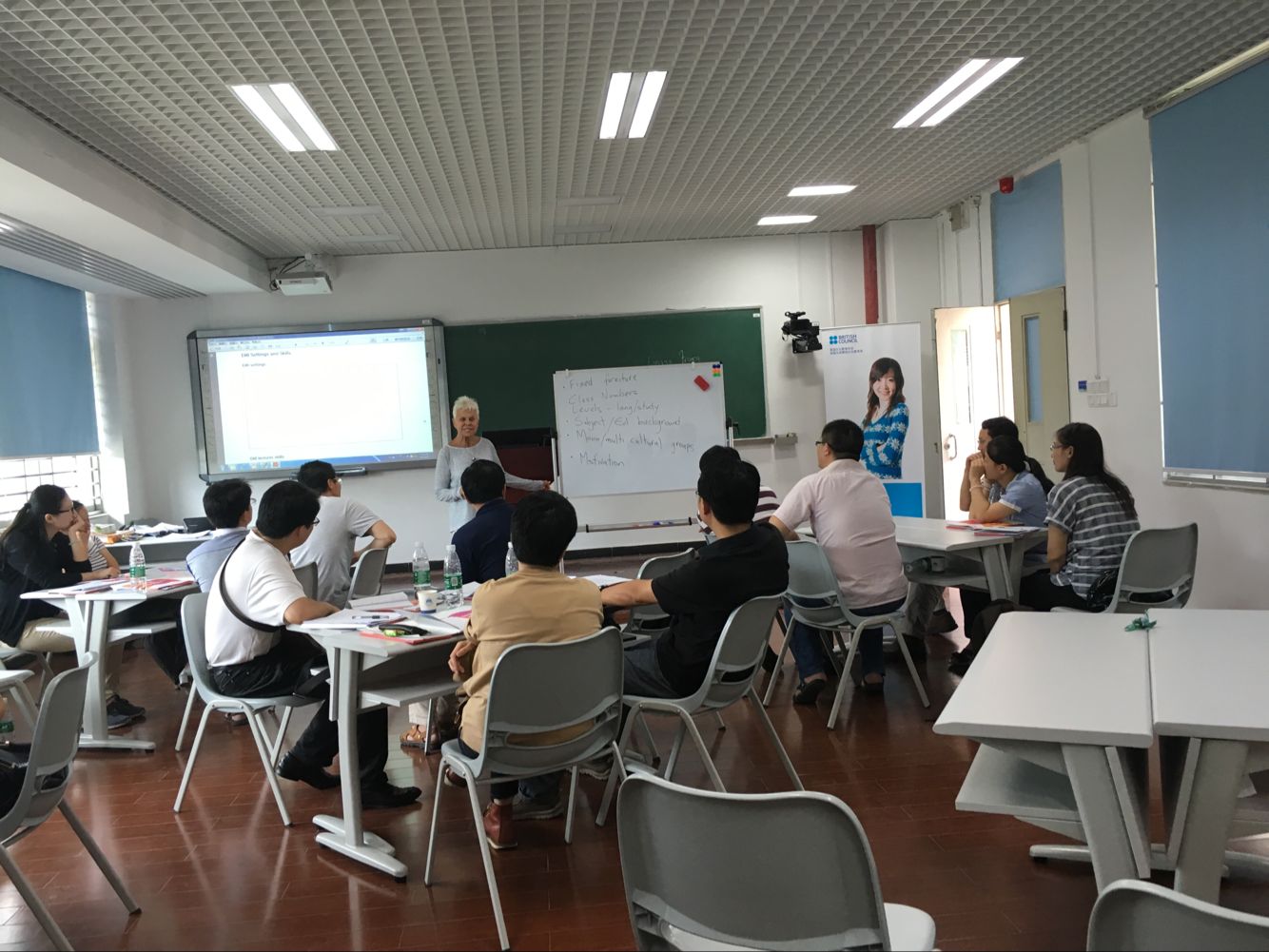 2016年8月22-23日,教师教学发展中心主任彭静教授到华南理工大学参加了英国文化委员会与华南理工大学共同实施的EMI(English as a Medium of Instruction)项目开班。彭主任观摩了培训课程,询问了培训师和参训教师课程设置的情况。在课程观摩结束后,彭主任与华南理工大学教务处副处长赵红茹,教师教学发展中心办公室主任梁权森就如何更好培养全英文授课教师、EMI教学研讨等进行了交流。通过此次交流,双方加深了对彼此的了解,为互相学习、借鉴积累了更多的资源。