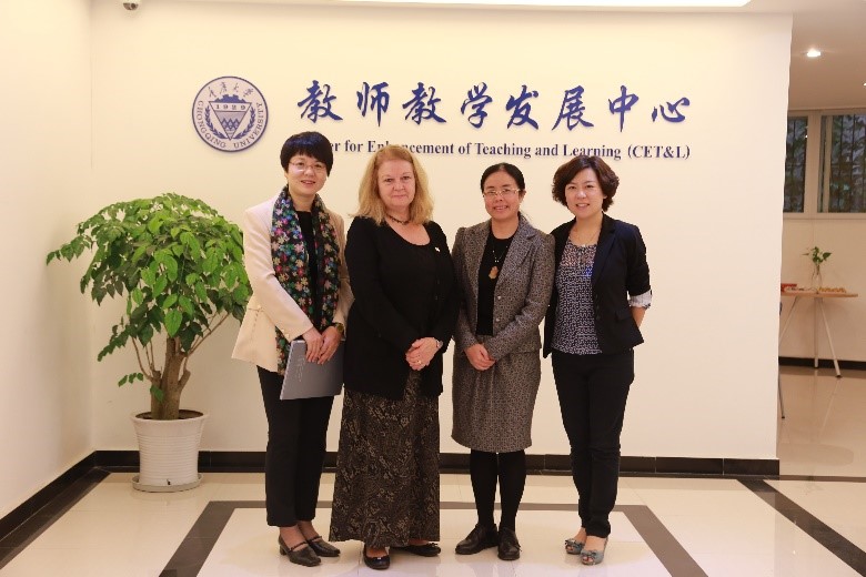 2015年11月10日,加拿大劳瑞尔大学(Wilfrid Laurier University)教学创新和卓越中心(Center for Teaching Innovation and Excellence)主任Sandy Hughes女士和加拿大劳瑞尔大学中国办事处主任祝宁宁女士一行到访教师教学发展中心,就合作开展我校教师培训的相关事宜进行了洽谈。重庆大学教师教学发展中心彭静副主任和负责国际化背景下教师发展项目的陈圆老师参加了座谈。