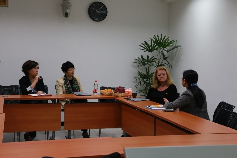 彭主任首先向对方介绍了中心在教师培训、教学咨询、教学资源建设等方面开展的主要工作,重点介绍了我校的新入职教师培训项目以及国际化背景下为提高我校教师的教学能力和国际交流能力而开展的“全英文授课教师培训项目”和“研究人员国际沟通力提升培训项目”。随后,双方就两校共同关注的合作开展教师教学能力培训以及培训方式、开展时间、参训人员构成与选拔、培训主要内容等重点问题进行了深入交流与磋商。